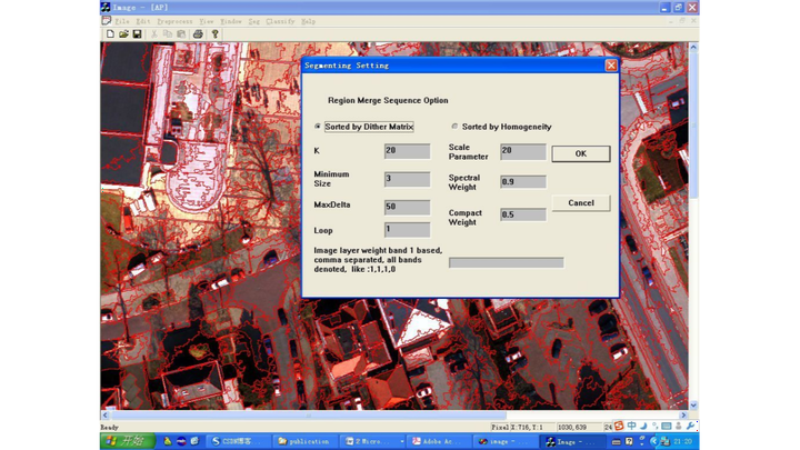 These segmentation approaches were used to segment high resolution remotely sensed images, achieving comparable performance to the hierarchical method in eCognition and the watershed transform method in ENVI.